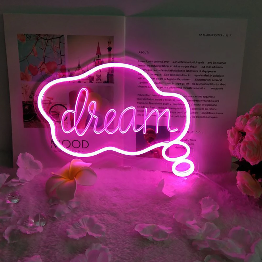 Светодиодная неоновая высветильник ка Dream с буквами, неоновая вывеска, украшения для праздника, Рождества, вечеринки, свадьбы, домашний декор для стен, неоновая лампа, подарки