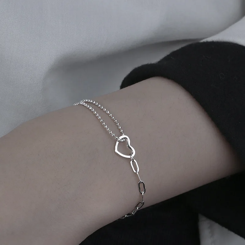 Женский необычный браслет MEYRROYU, дизайнерский браслет из стерлингового серебра с креативной цепочкой в виде сердца, аксессуар для рук, подарок для женщин