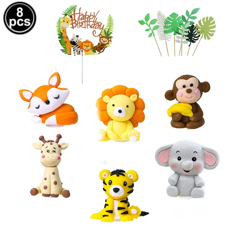 8 шт.лот украшение в джунглях набор топперов для торта сафари украшение на день рождения животное лев лиса слон