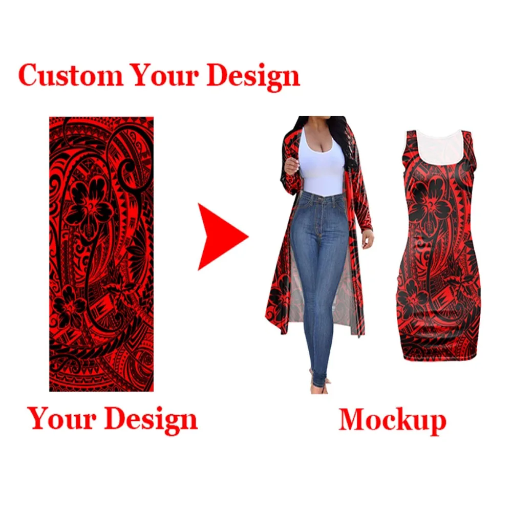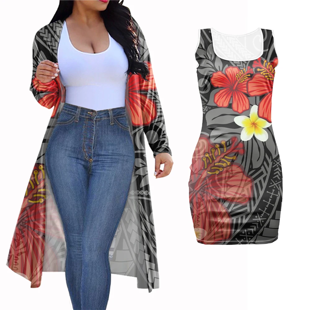 Лидер продаж 2021, женский красный Повседневный тонкий кардиган в стиле Самоа с гибискусом и Полинезийским принтом, пикантное облегающее платье с длинным рукавом