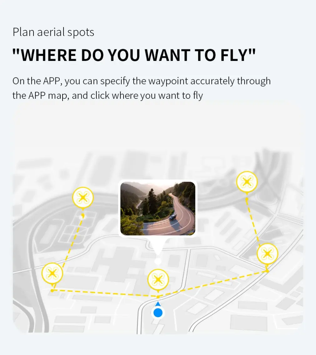 -Режим полета Waypoint. Откройте приложение БПЛА, используйте план полета под рукой, просто нарисуйте маршрут на экране, и самолет автоматически полетит по заданному маршруту.
