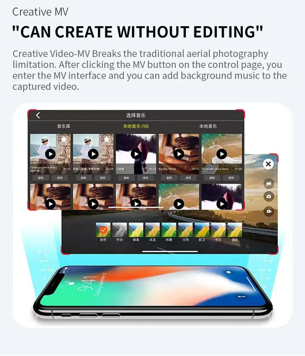 -С функцией 5G WIFI вы можете подключиться к приложению, делать фото / видео и передавать изображения в реальном времени через камеру мобильного телефона.