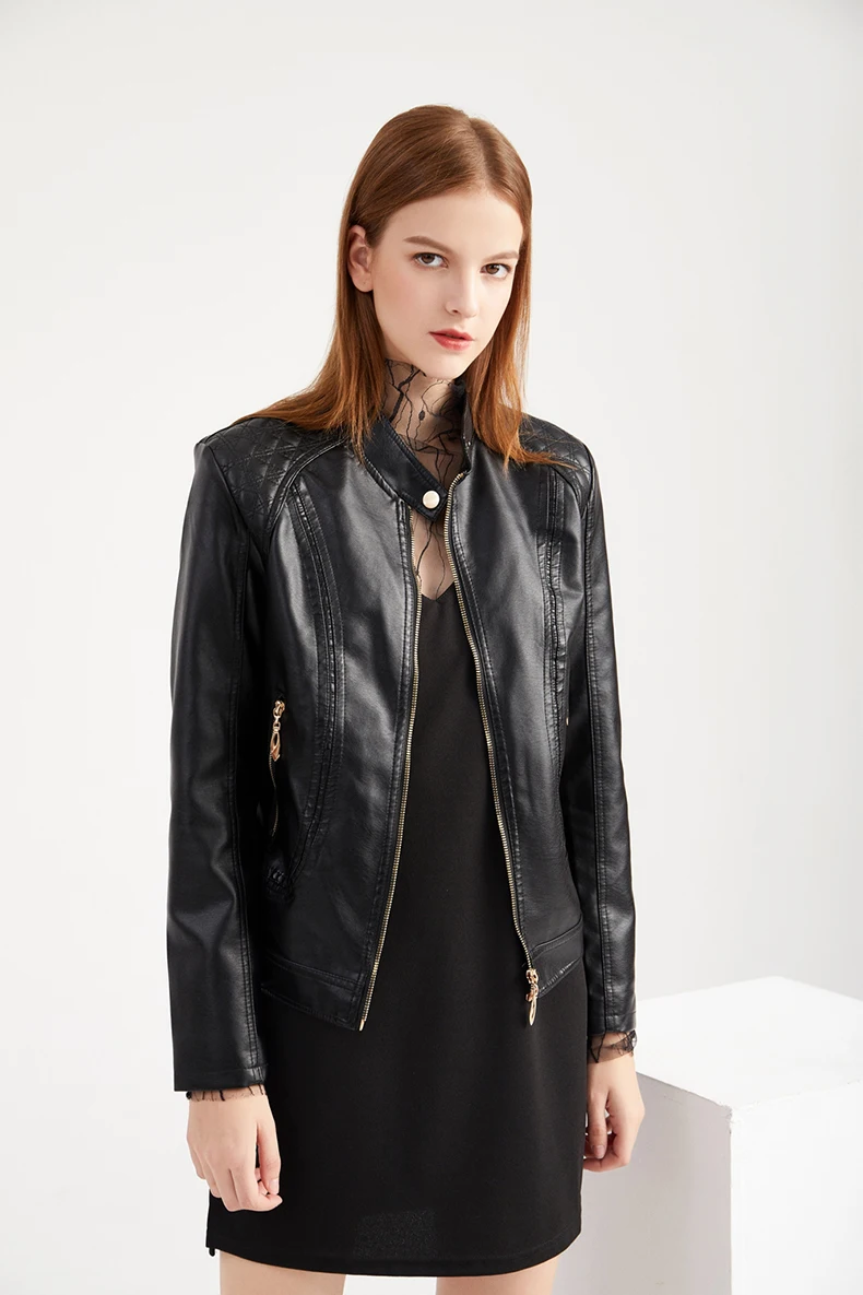 Осенняя Женская куртка из искусственной кожи 2021, Женская однотонная байкерская куртка на молнии с поясом, женская уличная Повседневная Верхняя одежда большого размера из искусственной кожи