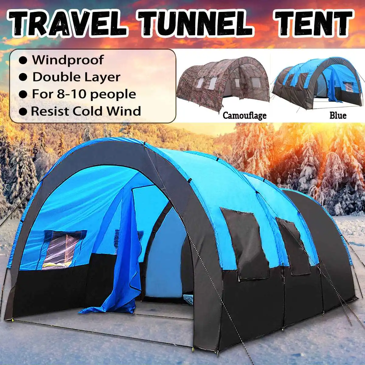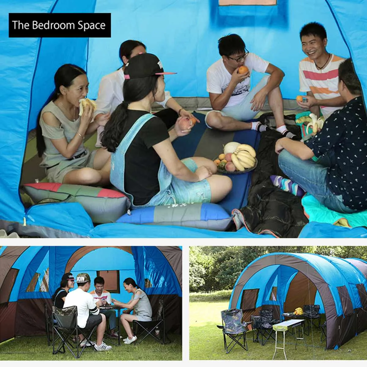 Палатка туристическая на 5-8 человек, Большая водонепроницаемая туннельная палатка из брезента и стекловолокна для всей семьи, оборудование для отдыха на открытом воздухе, альпинизвечерние