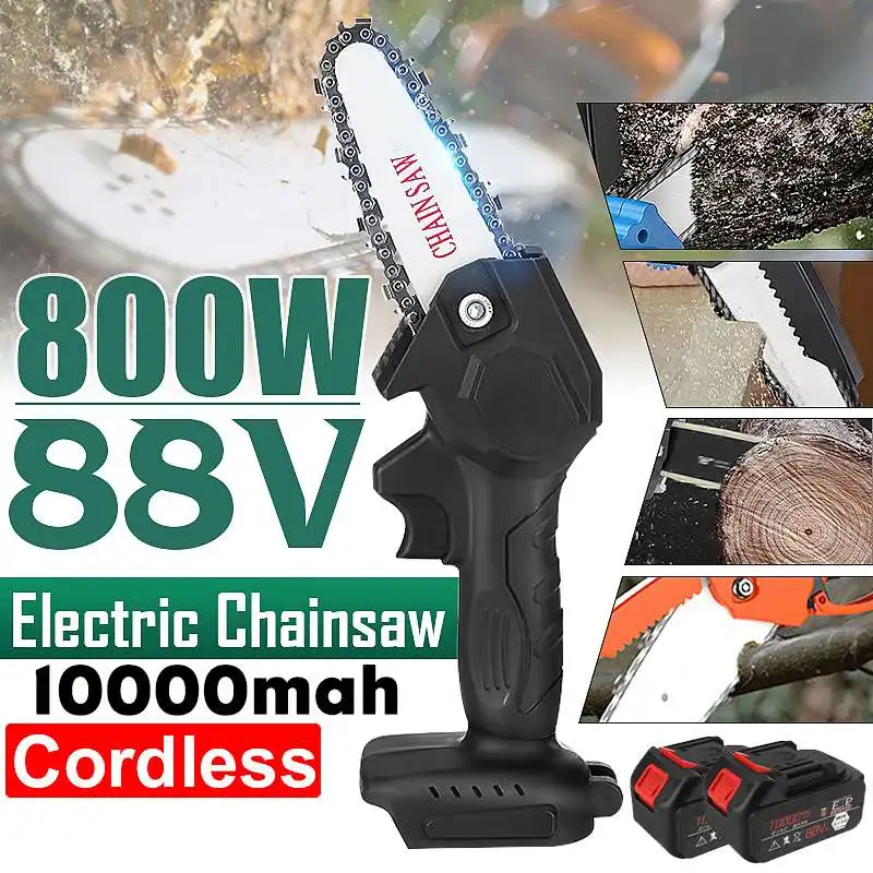 Пила цепная электрическая, 4 дюйма, 800 Вт, 88 в, с 2 литий-ионными аккумуляторами
