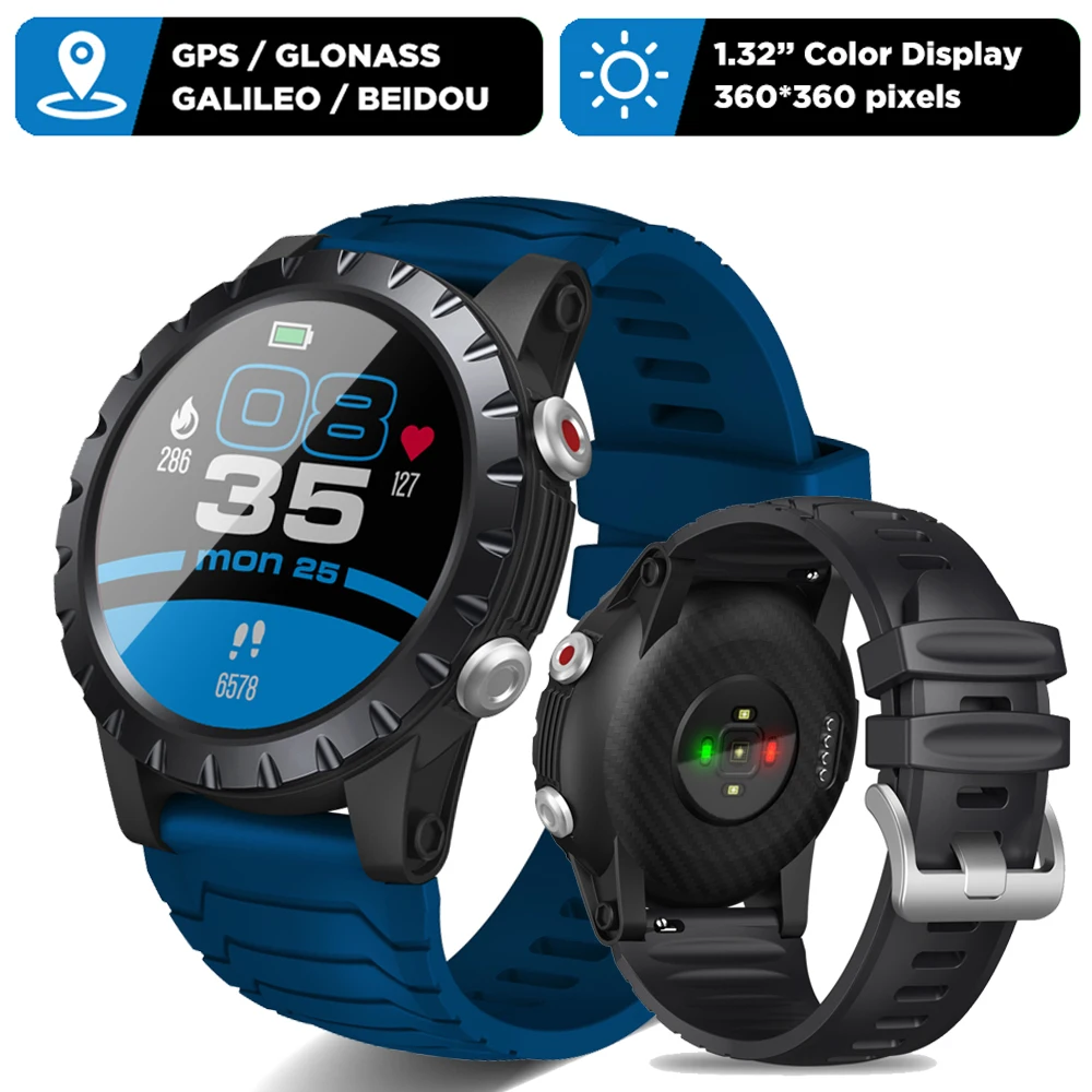 Название продукта: умные часы с GPSЧип: MTK2523G, ARM CORTEX-M4 208 МГцВодонепроницаемость: 50 мРазмер дисплея: цветной сенсорный экран HD, размер 1,32 дюйма (32,9 мм) в диаметре. Разрешение дисплея, 360*360 пикселейGPS: Встроенный GPS, ГЛОНАСС, GALILEO, BEIDOU.Поддержка GPS для быстрой фиксации времени. Барометрическая высота, наклон, подъем и спуск.Датчики для измерения пульса на запястье, монитор насыщения кислородом в крови, акселерометр, магнитометр, компас.Bluetooth:BLE 5,0Емкость аккумулятора: литий-полимерный аккумулятор 580 мАч.Срок службы батареи: режим экономии батареи часов: до 25 дней; Режимы смарт-часов: до 14 дней; Максимальный режим GPS батареи: до 40 часов.Время зарядки: около 2,5 часовНазвание приложения: ZeronerСовместимость смартфонов: Android 6,0 или iOS 9,0 и выше.Хранение данных 14 дней обзор и подробности данных.Обновление OTA: ПоддержкаСистема английский, японский, французский, немецкий, итальянский, португальский, испанский.Приложение Zeroner английский, японский, немецкий, французский, испанский, португальский, итальянский, русский, тайский, норвежский, польский, турецкий, шведский, чешский, корейский, украинский, голландский.Push-сообщение: английский, японский, французский, немецкий, итальянский, португальский, испанский.Характеристики часов: время/дата, синхронизация времени GPS, Автоматическое летнее время, будильник, таймер, секундомер, обратный отсчет, Время восхода/заката.Мониторинг здоровья: пульс на запястье (постоянная, каждую минуту), ежедневный пульс в отдыхе, оповещения об аномальном пульсе, здоровье сердца, измерение уровня SpO2, управление стрессом, VO2 max, тренировка дыхания, оценка сна и понимание, отслеживание сжигания калорий.Ежедневные умные функции: компас, умные уведомления, события, календарь, погода, управление музыкой на смартфоне, поиск моего телефона, поиск моих часов, режимы «Не беспокоить», напоминания о перемещении.Функции отслеживания активности: счетчик шагов, панель перемещения (отображается на устройстве после периода бездействия; Пройдите пару минут, чтобы сбросить его), автоматическая цель (изучает уровень вашей активности и назначает ежедневную Цель шага), сожженные калории, темп и расстояние в реальном времени.
