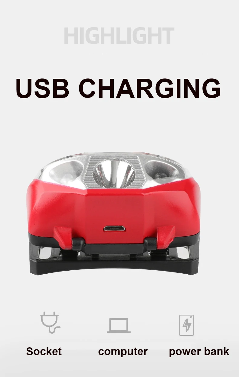 【Светодиодный перезаряжаемый Головной фонарь USB можно заряжать usb-кабель полностью от любого USB и одновременно включать свет. Индикатор зарядки, красный при зарядке, зеленый при полной зарядке, поможет вам зарядить аккумулятор, USB зарядный кабель в комплекте.
