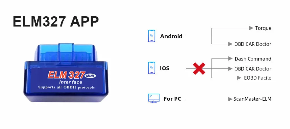 Android:Torque, DashCommand, OBD Car Doctor, Auto Doctor, Mini OBD, EOBD и т. д.
