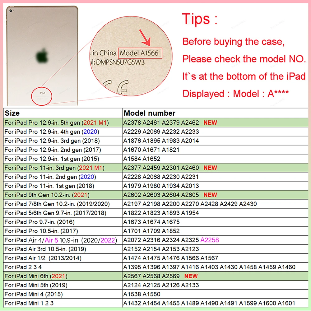 Номер моделиFor iPad Pro 11 2021 Air 4 3 10.5 7th 10.2 Mini 5 2019 MINI 6