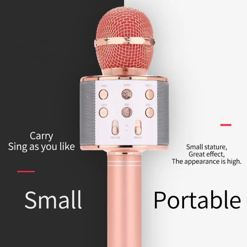 Простой в использовании и портативный микрофон-дизайн многофункциональной кнопки, вы можете настроить басы, высокие частоты, эхо, громкость воспроизведения и т. д., и свободно переключаться между предыдущей и следующей песней. Поскольку он легкий и удобный для переноски, Он удобен, если вы носите его в различных местах. Эффективный опыт моделирования уровня ktv.