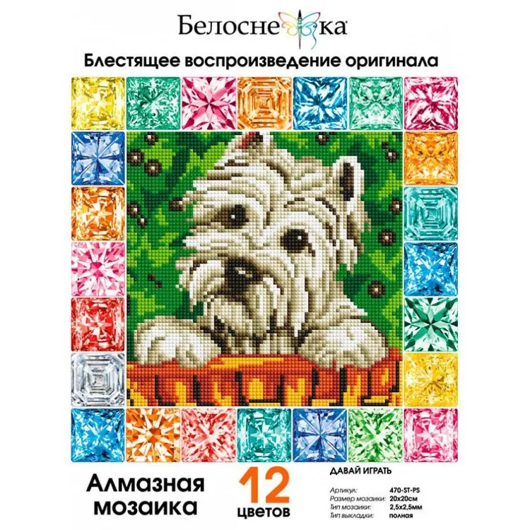 Алмазная мозаика "Давай играть", 20x20 см, Белоснежка, 470-ST-PS