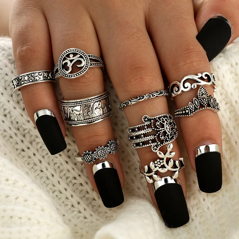 Набор колец с короной из нержавеющей стали для женщин и мужчин, ажурные богемные Ретро Кольца с вырезками в виде животных, эстетические