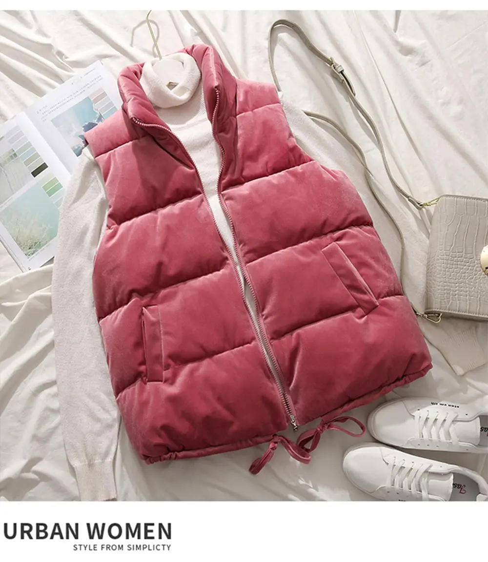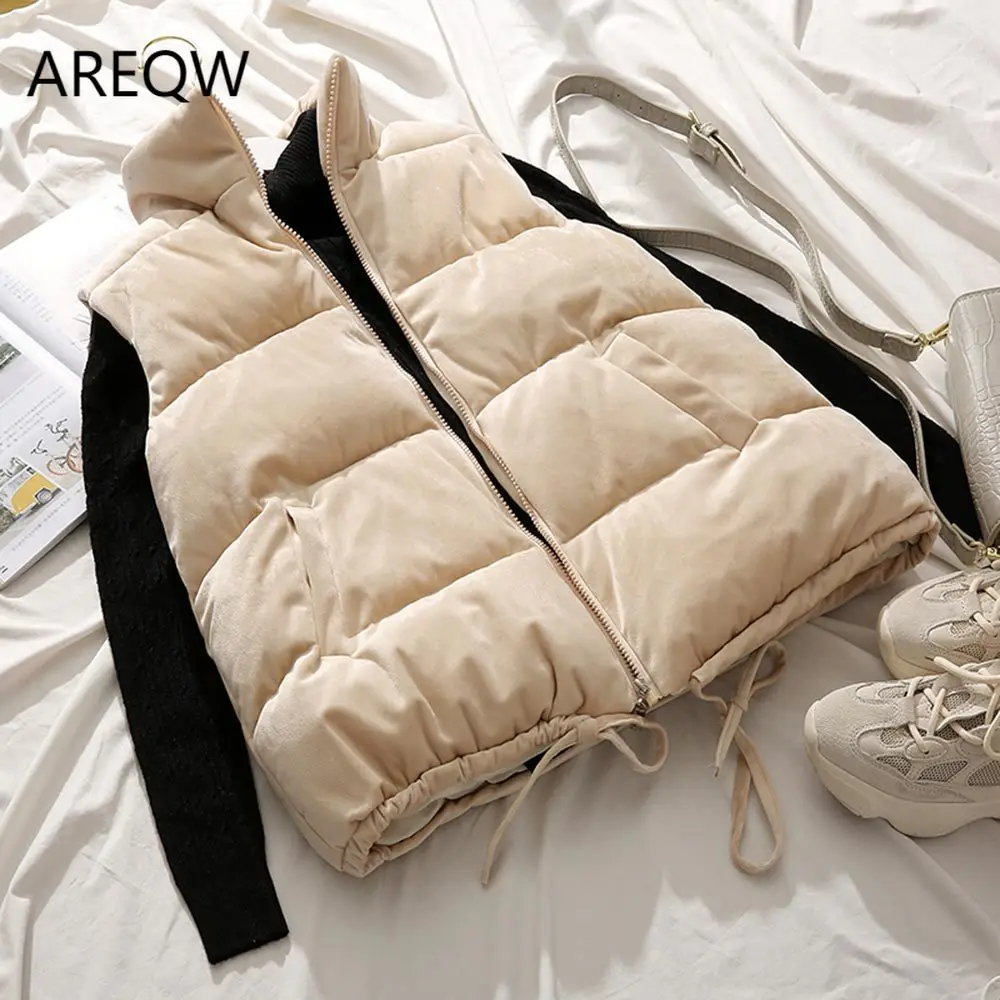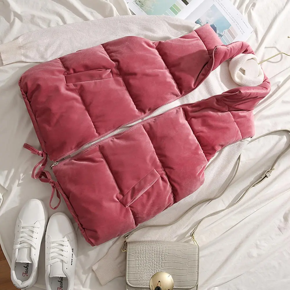 Новинка, Женский Золотой бархатный жилет, осенняя теплая пуховая ку...