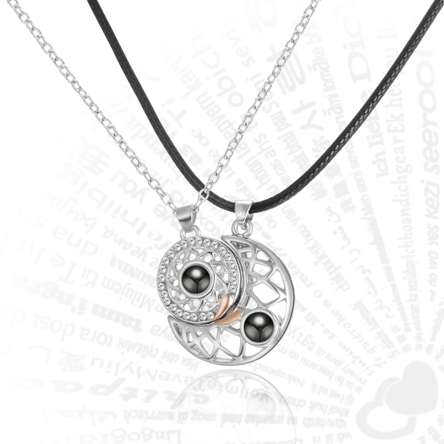 Ожерелье с проекцией Я люблю тебя на 100 языках, солнце и луна, пам...