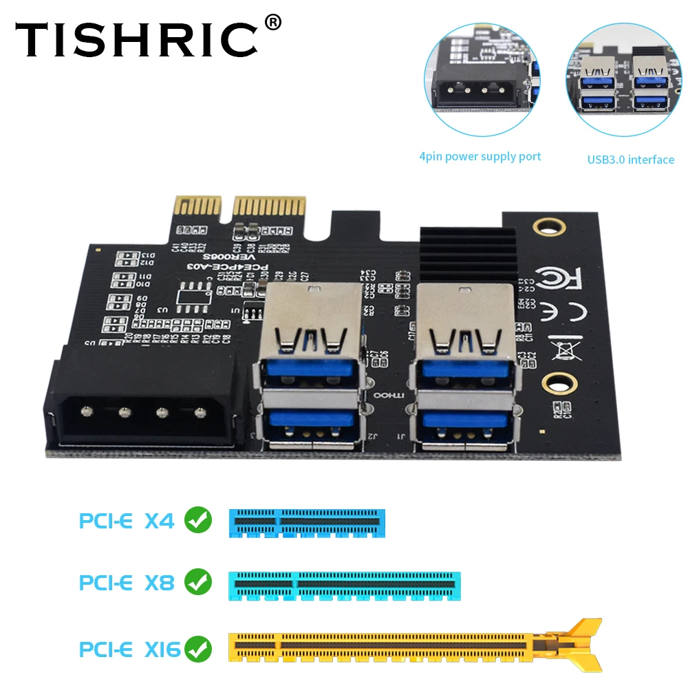 TISHRIC PCIE от 1 до 4 PCI Express, усилитель USB 3,0 Hub PCIE, кар...