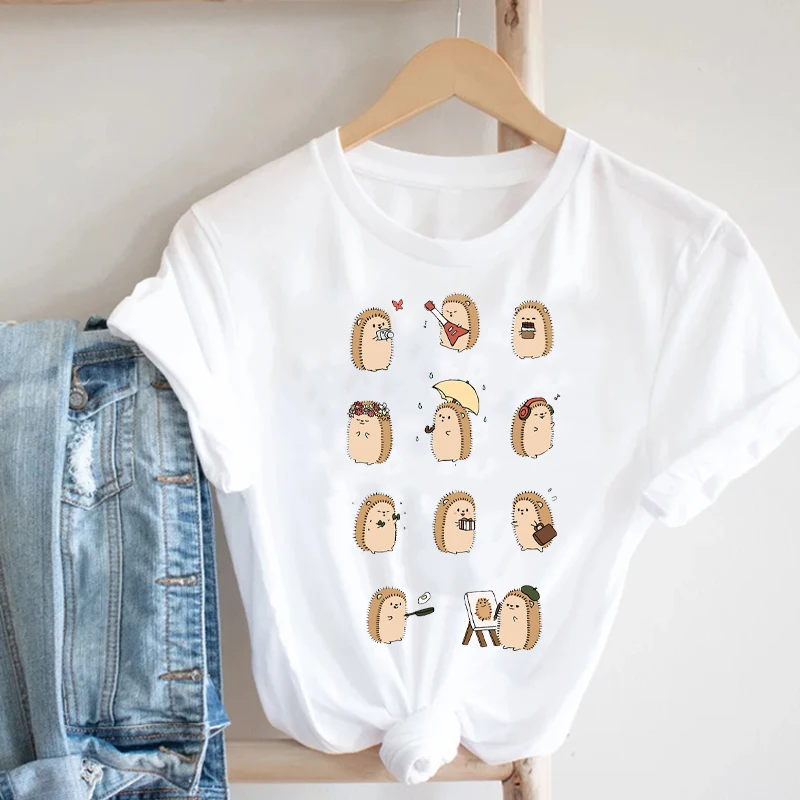 Женская футболка с коротким рукавом, белая футболка с забавным рису...