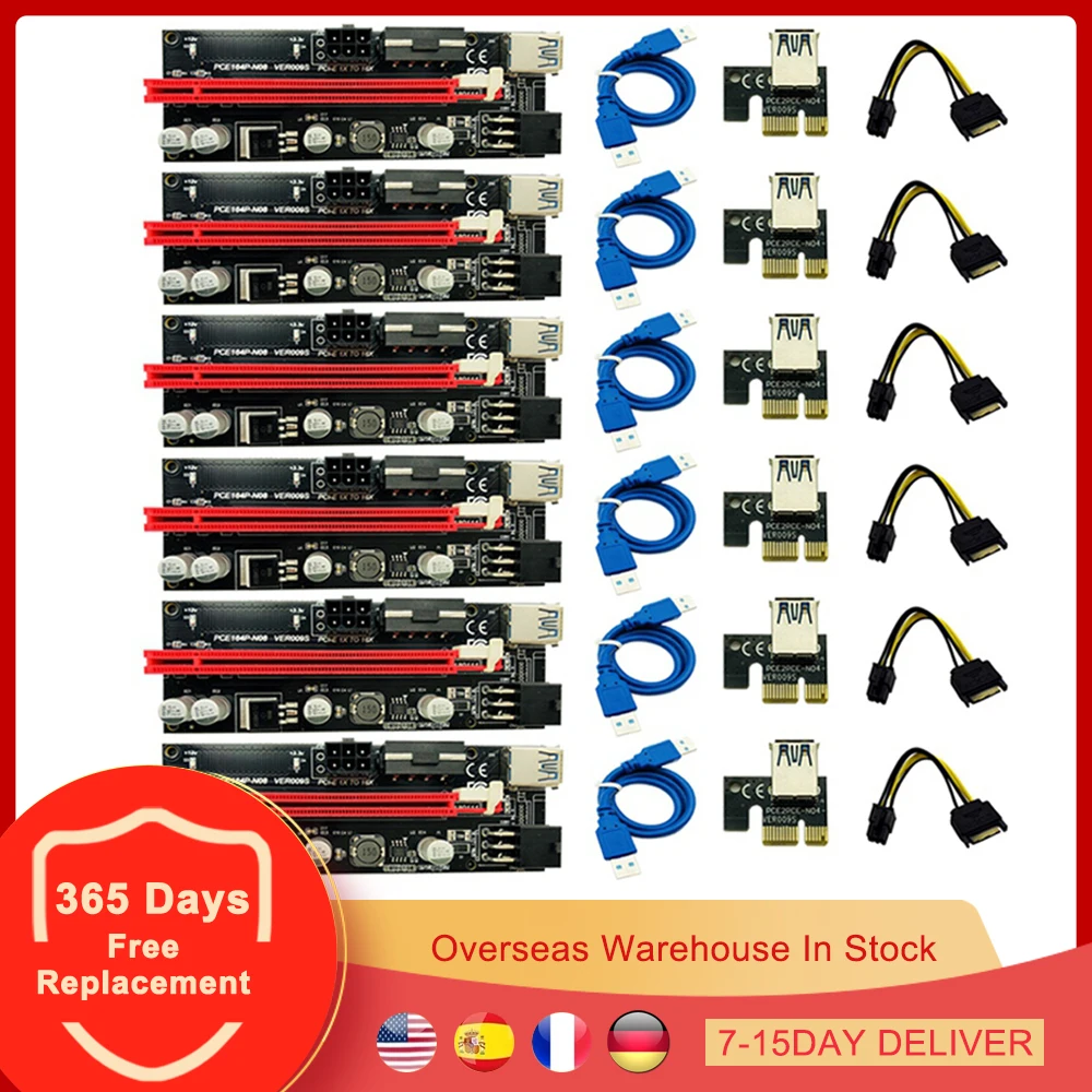6 шт., Райзер-карта VER009 PCIE PCIe X1 в PCIe X16 PCI Express, расширение для графической карты графического процессора ETH BTC Майнер