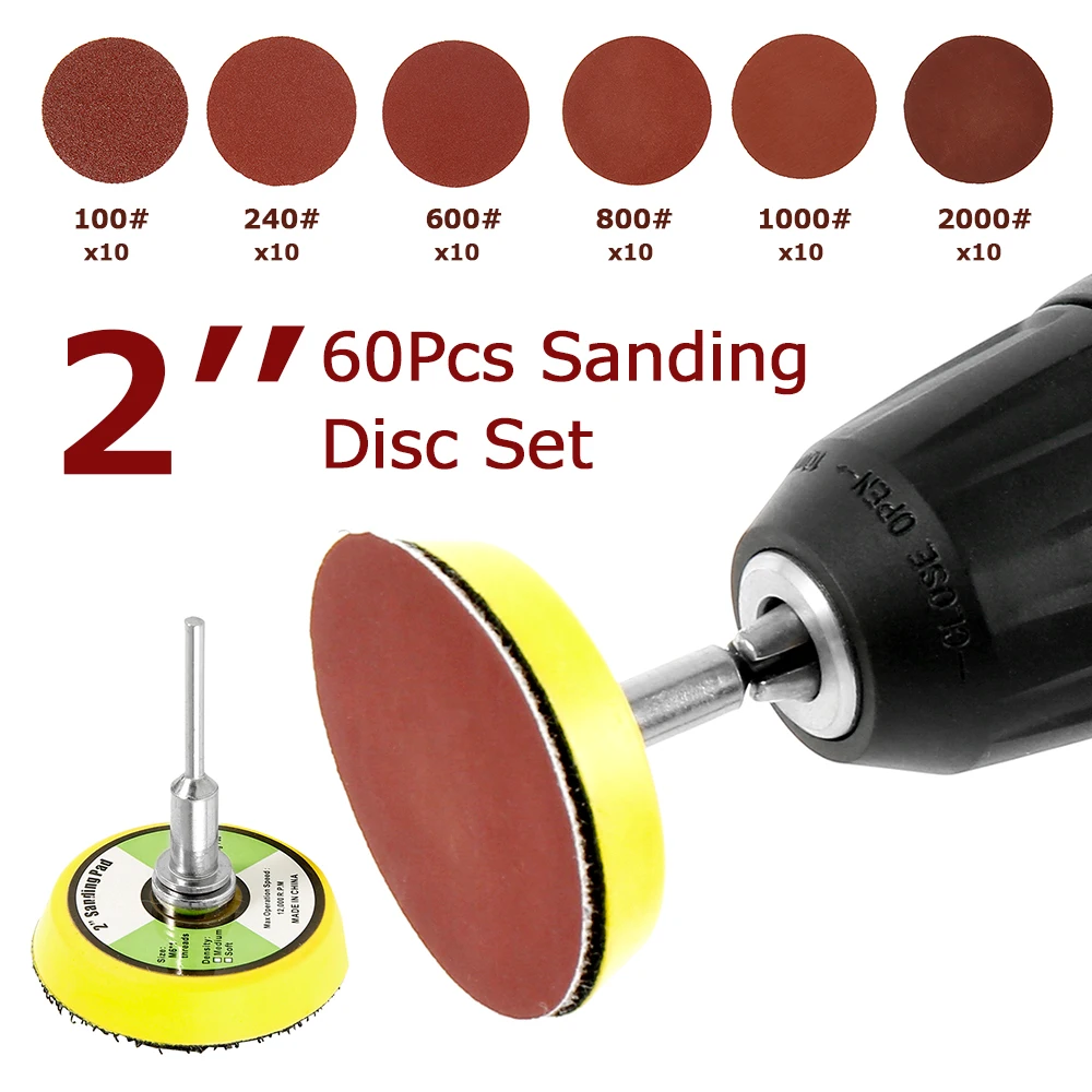 Набор шлифовальных дисков 10024060080010002000 Grits, 2 дюйма, 50 мм + петля, шлифовальный диск с хвостовиком 3 мм для полировки инструментов Dremel, 60 шт.
