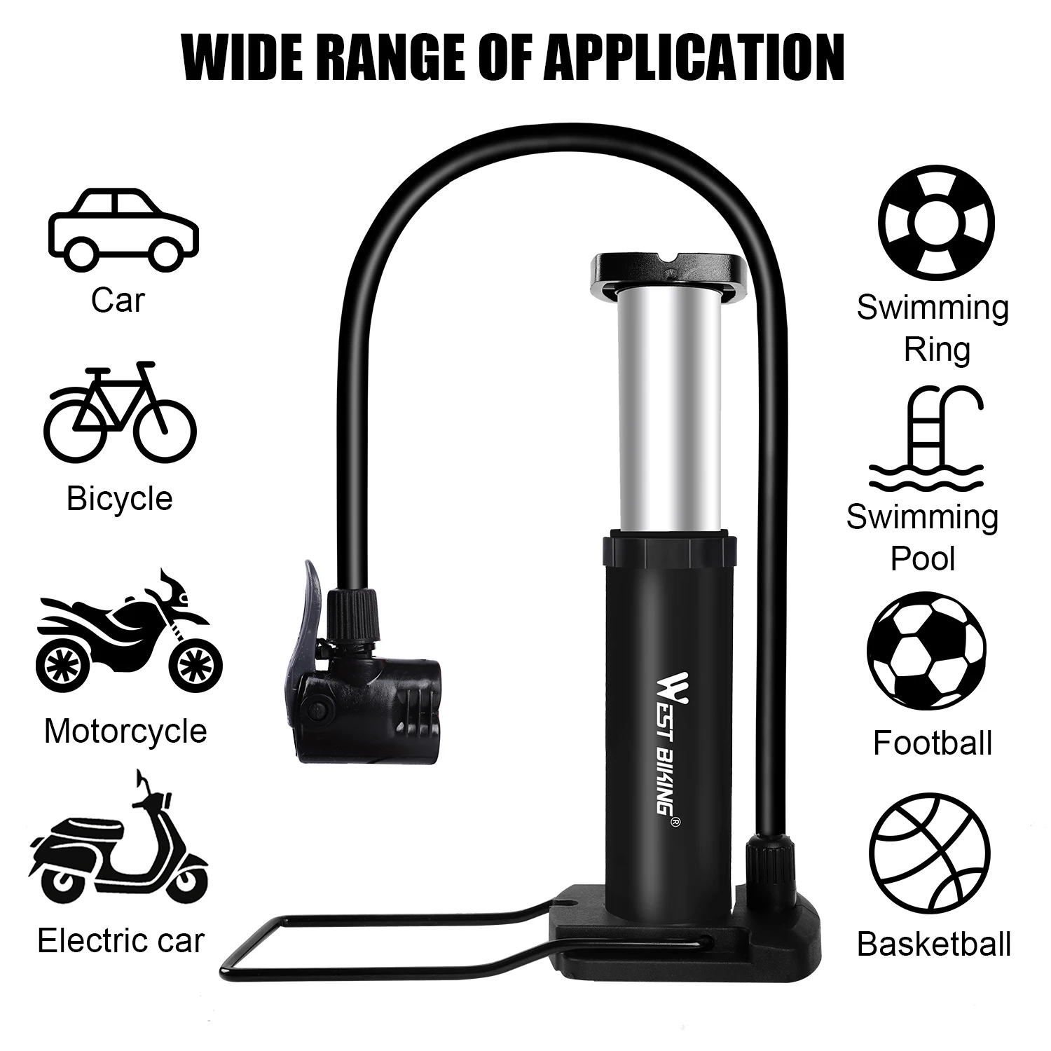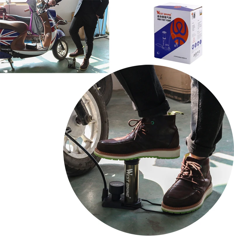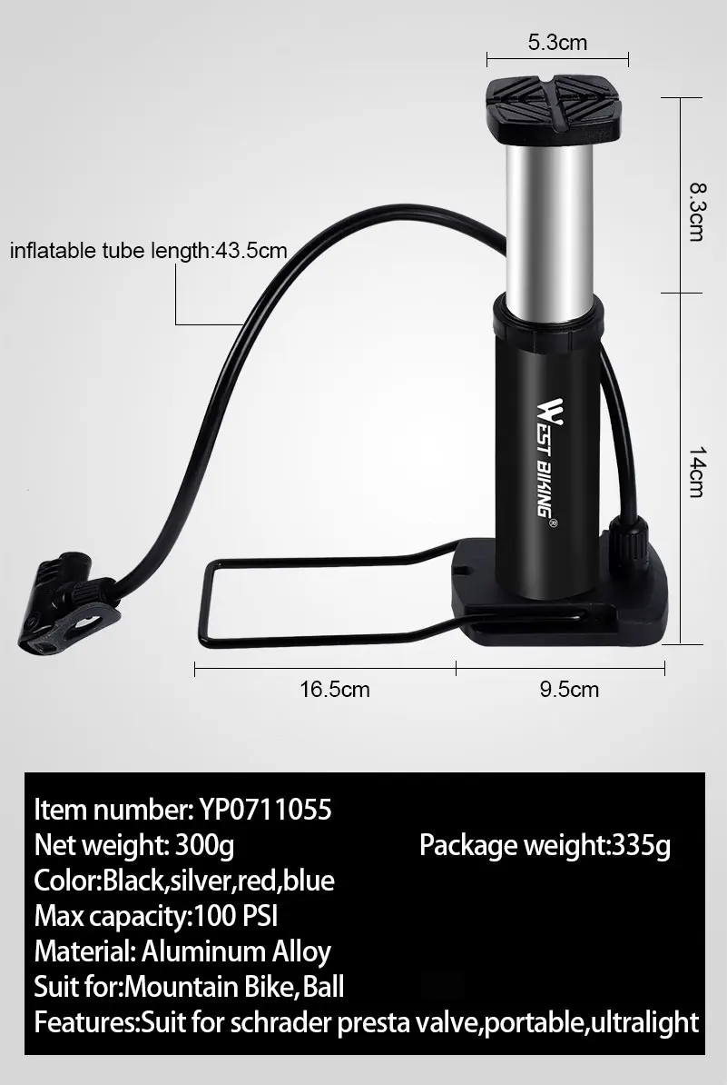 WEST BIKING ссветильник насос для горного и шоссейного велосипеда, портативный велосипедный воздушный насос, ножной насос 100psi, велосипедный насос высокого давления для шин