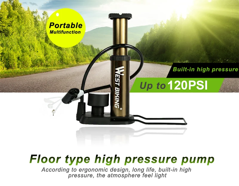 WEST BIKING ультра-светильник MTB велосипедный насос портативный насос с манометром Bomba de ar bicicleta 120 Psi велосипедный насос высокого давления