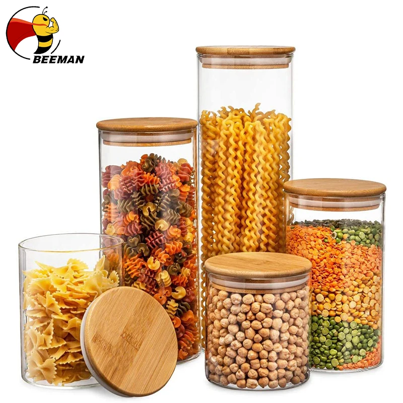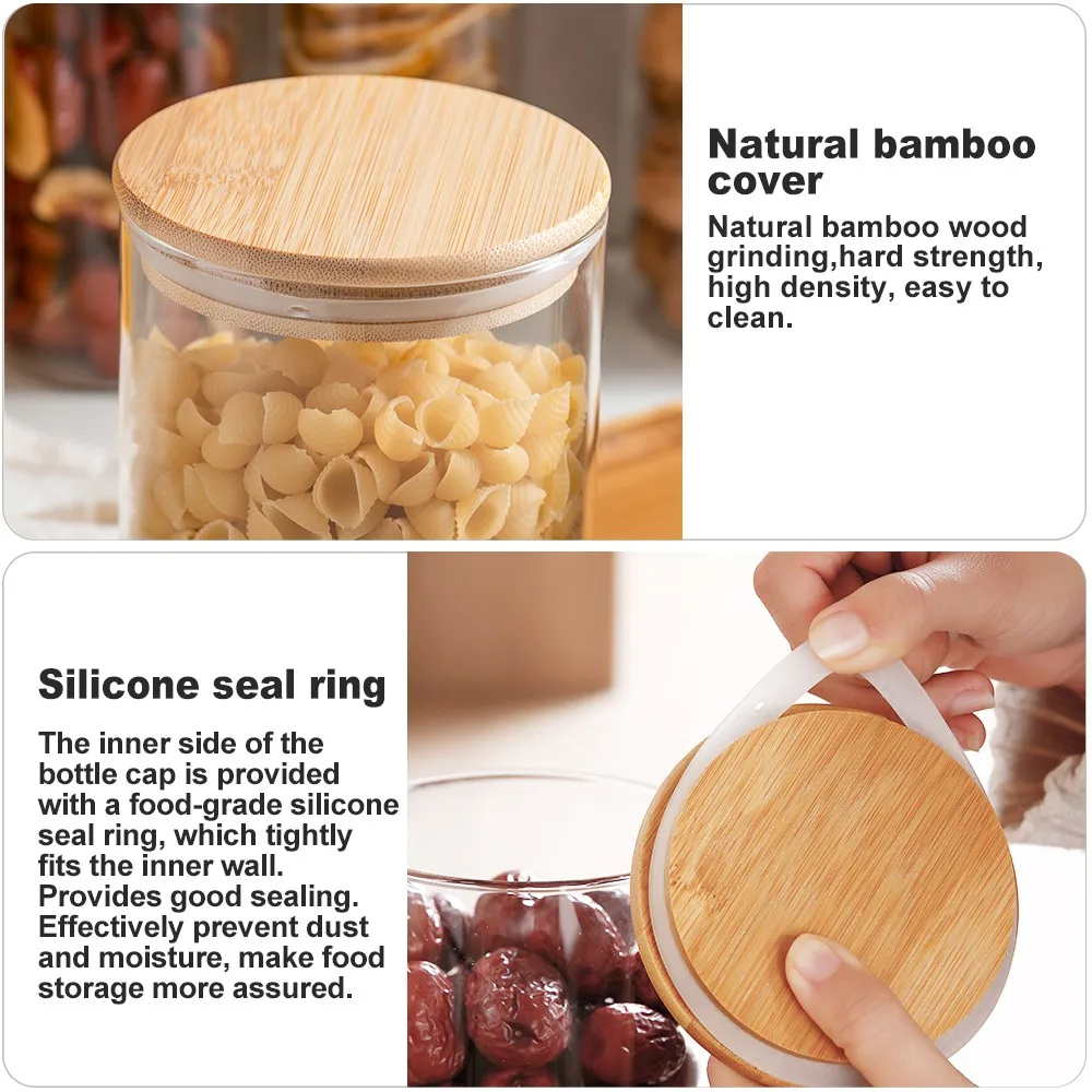Банка для сладостей Mason, стеклянные бутылки для специй, бамбуковый контейнер с крышкой, стеклянные банки с крышками, банка для печенья, кухонные банки и крышки