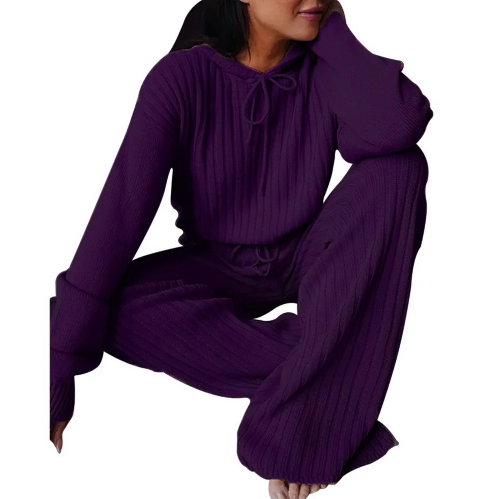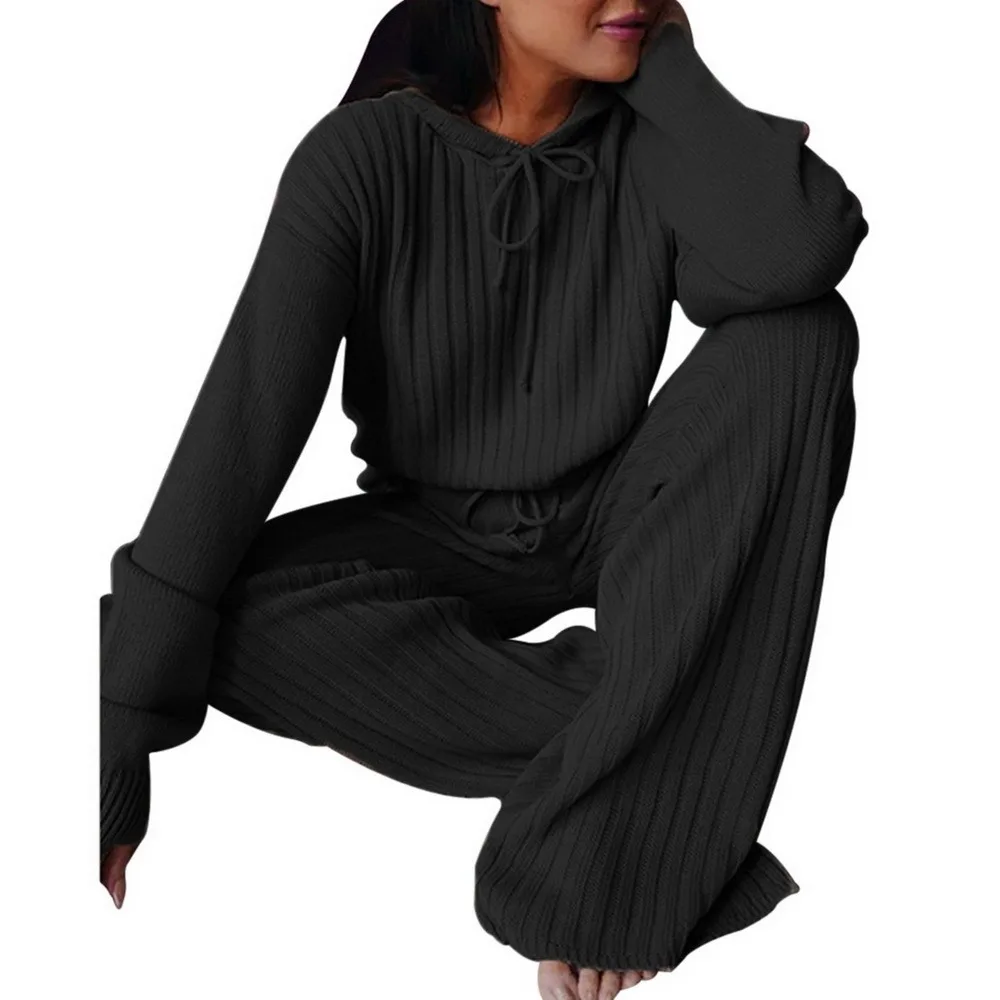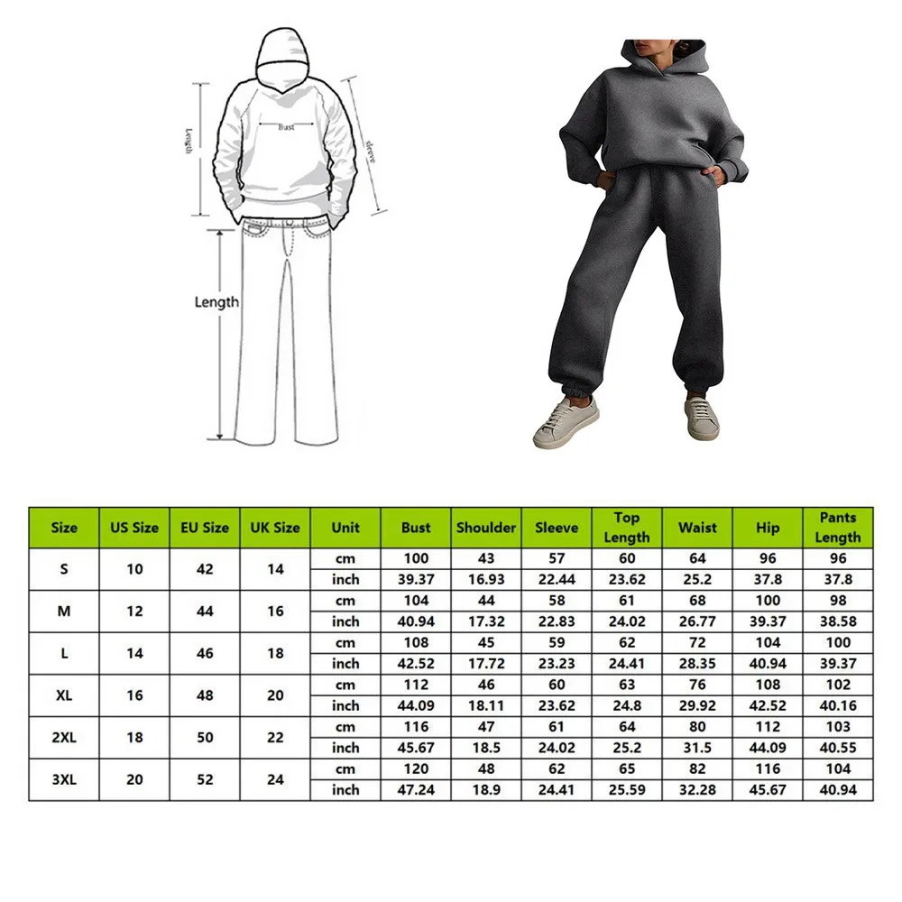 Комплекты из двух предметов, повседневный Однотонный женский спортивный костюм с капюшоном большого размера, спортивный костюм для женщин на осень и флисе, набор длинных брюк
