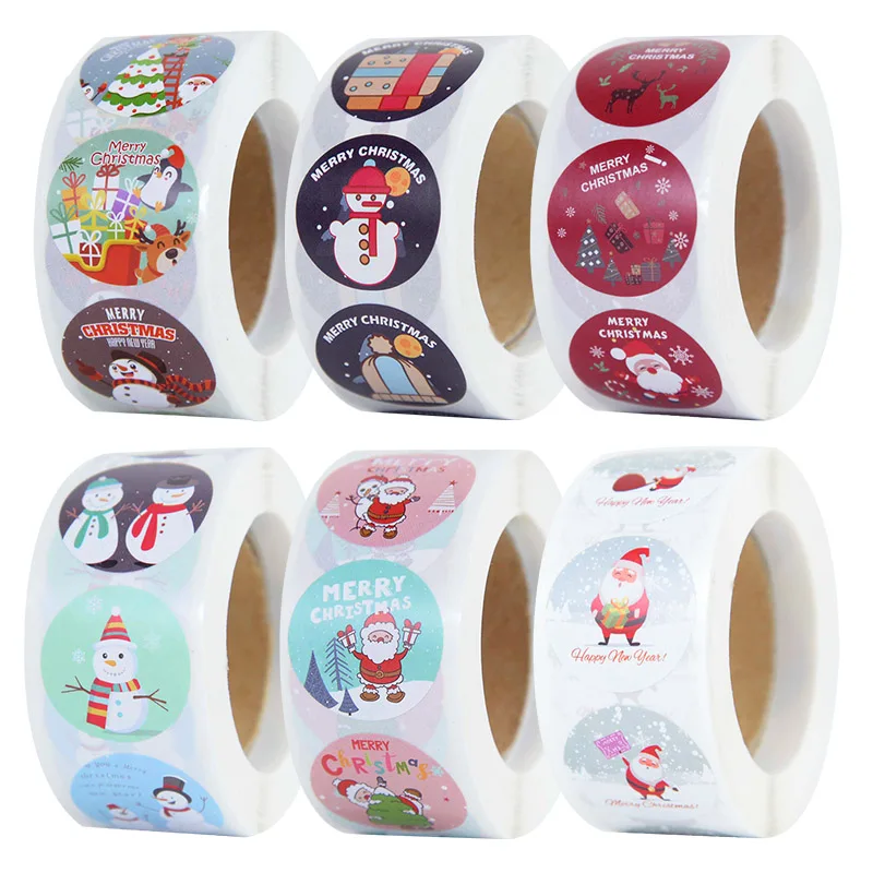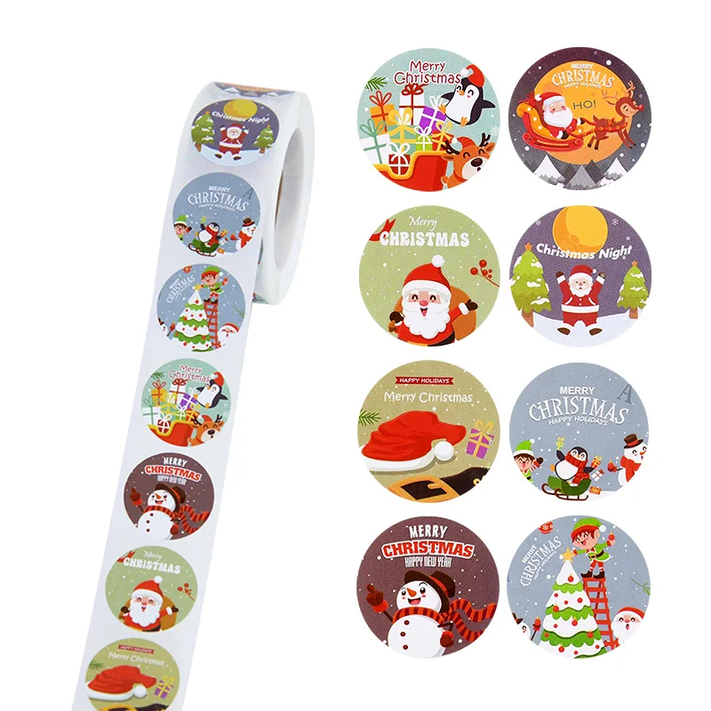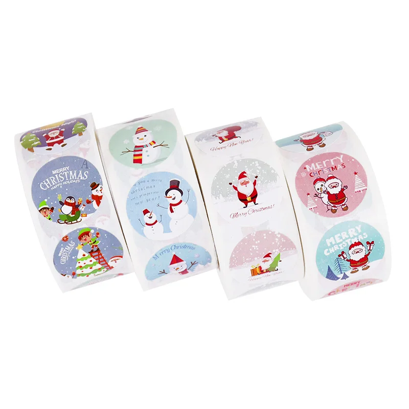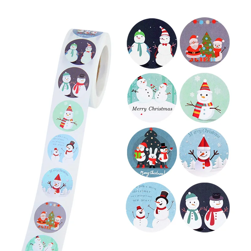 500 шт.рулон, Новогодние декоративные наклейки Санта-Клаус, Снеговик