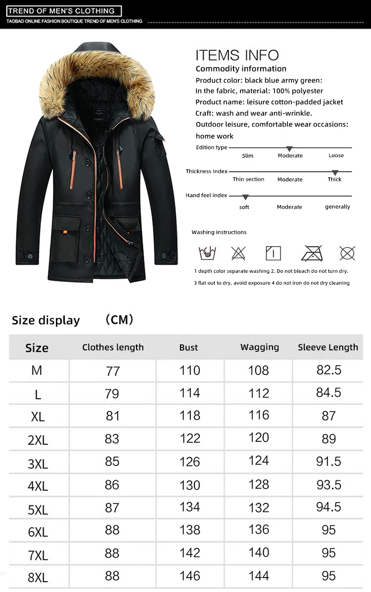 Мужская хлопковая куртка средней длины, зимняя теплая парка, пальто...