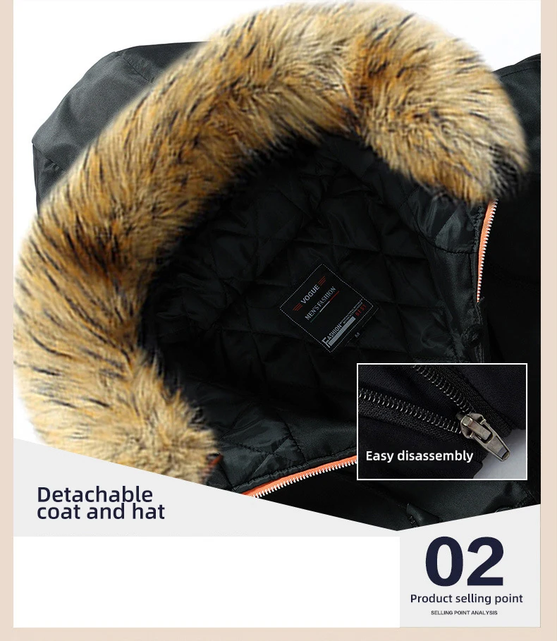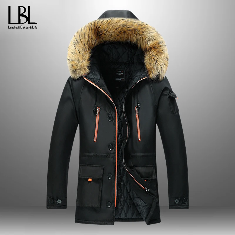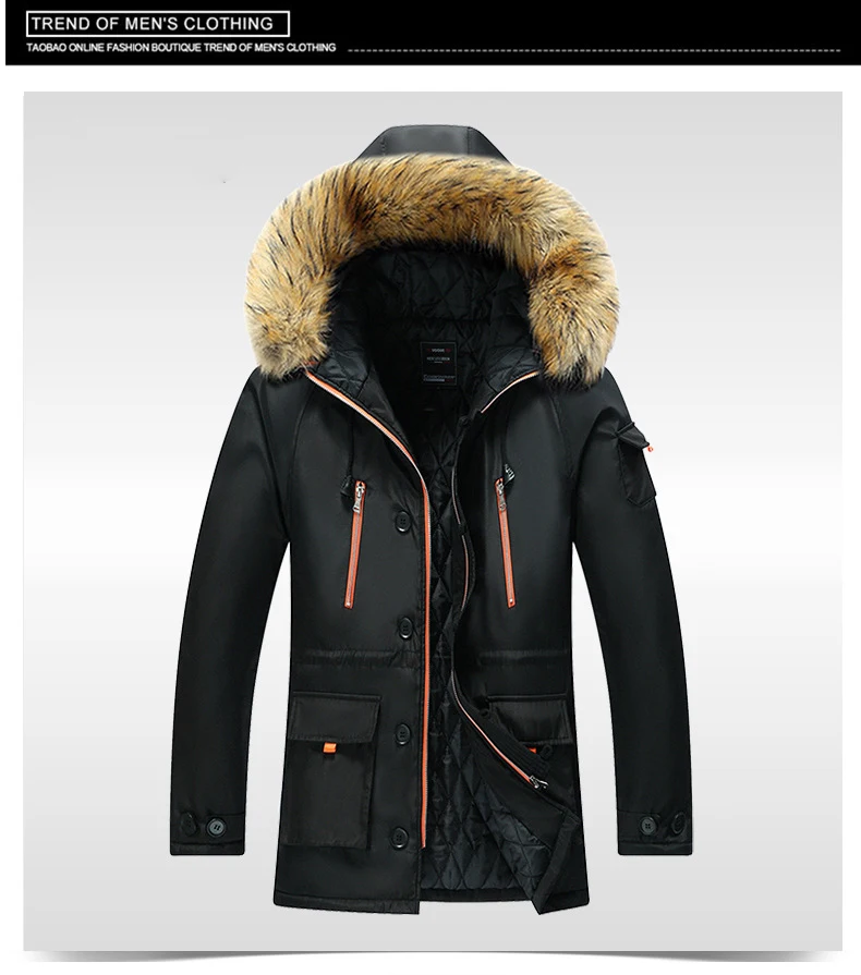 Мужская зимняя куртка с меховым воротником, парки, повседневные пух...