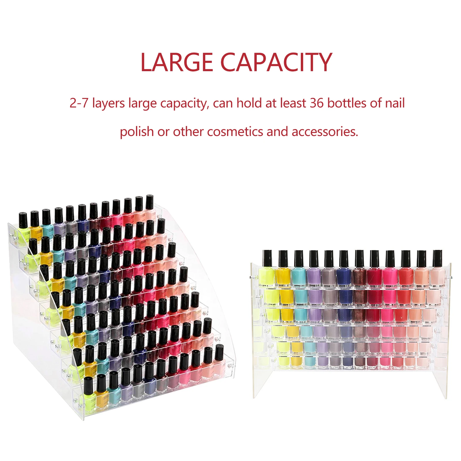 Большая емкость: 2-7 большой емкости, может быть установлен как минимум 36 бутылок лака для ногтей или других косметических средств и аксессуаров. Красиво оформленный, может быть показан на комоде или комоде для спальни. Вы можете выбрать размер дисплея.