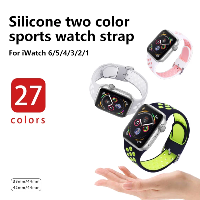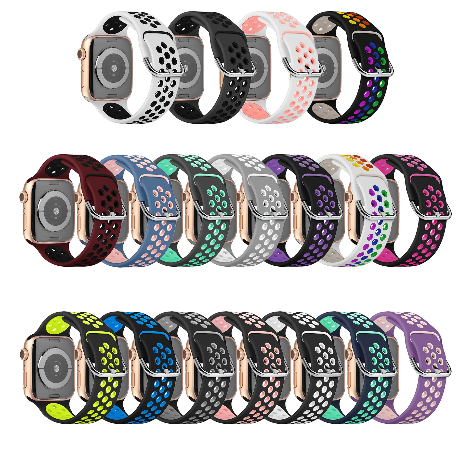 Ремешок силиконовый для Apple watch 6 5 38 мм 40 мм 42 мм 44 мм, спортивный Воздухопроницаемый браслет для iwatch series 6 SE 4 3 2 38 мм