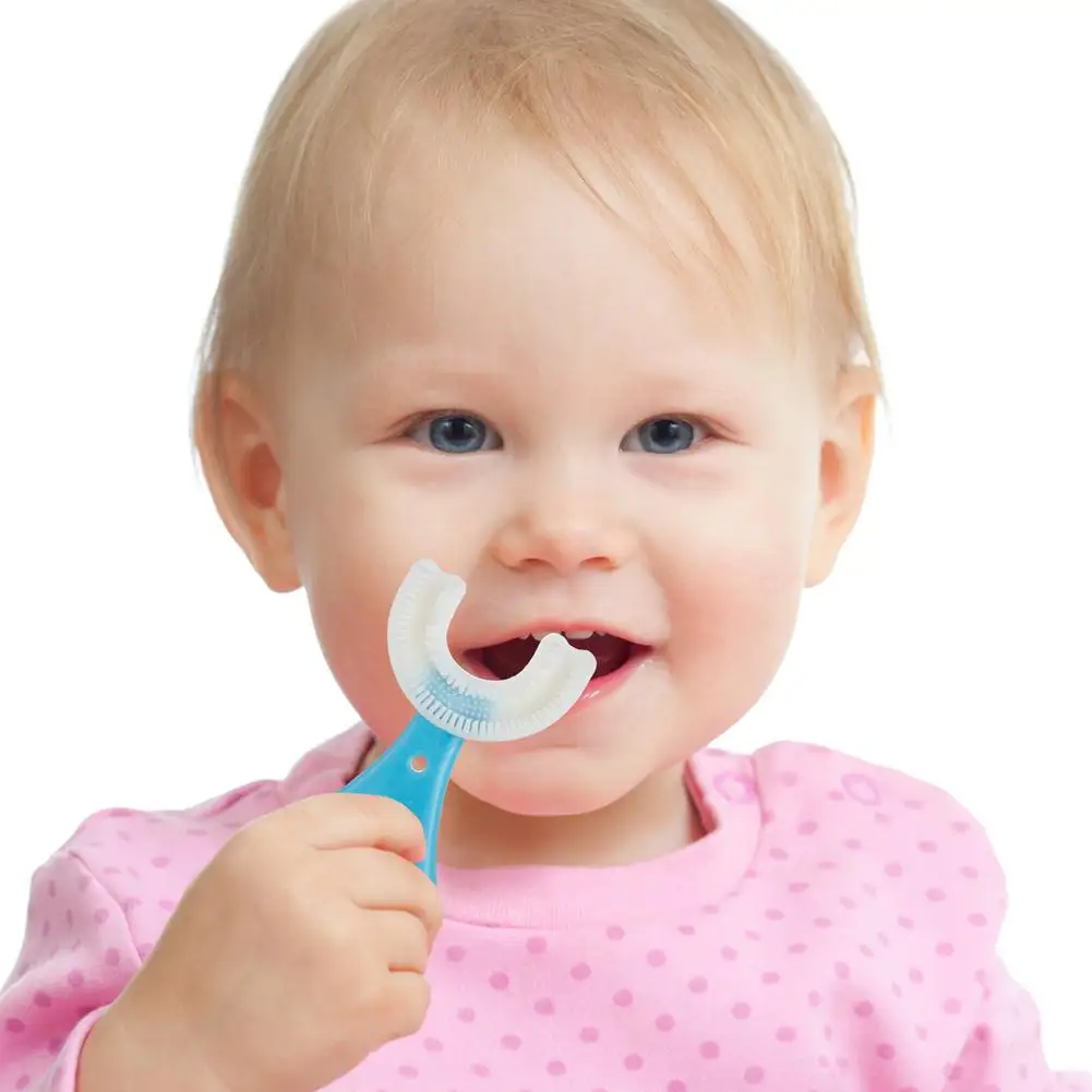 U-образная зубная щетка 360 градусов для детей, Силиконовая зубная щетка для зубов для новорожденных с мультяшным рисунком