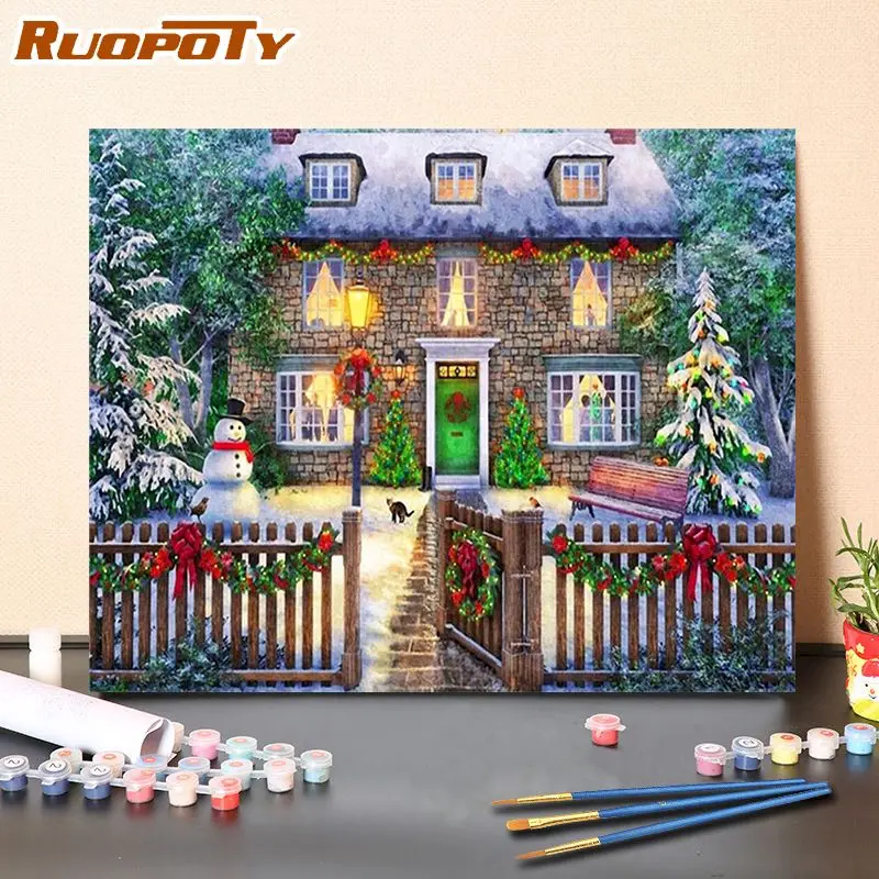 RUOPOTY Красочный дом пейзаж живопись по номерам ручной работы уник...