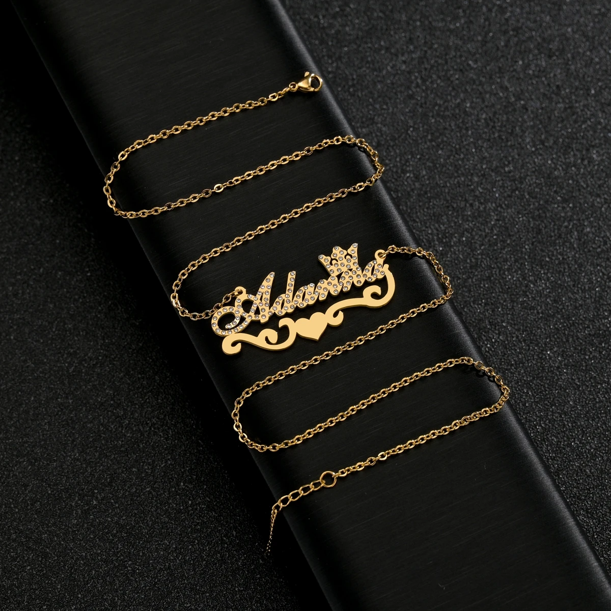 Модное ожерелье Atoztide с именем и буквой, ожерелье из нержавеющей стали с персонализированным именем, Золотая Корона, Хрустальная подвеска, ожерелья для женщин, ювелирные изделия