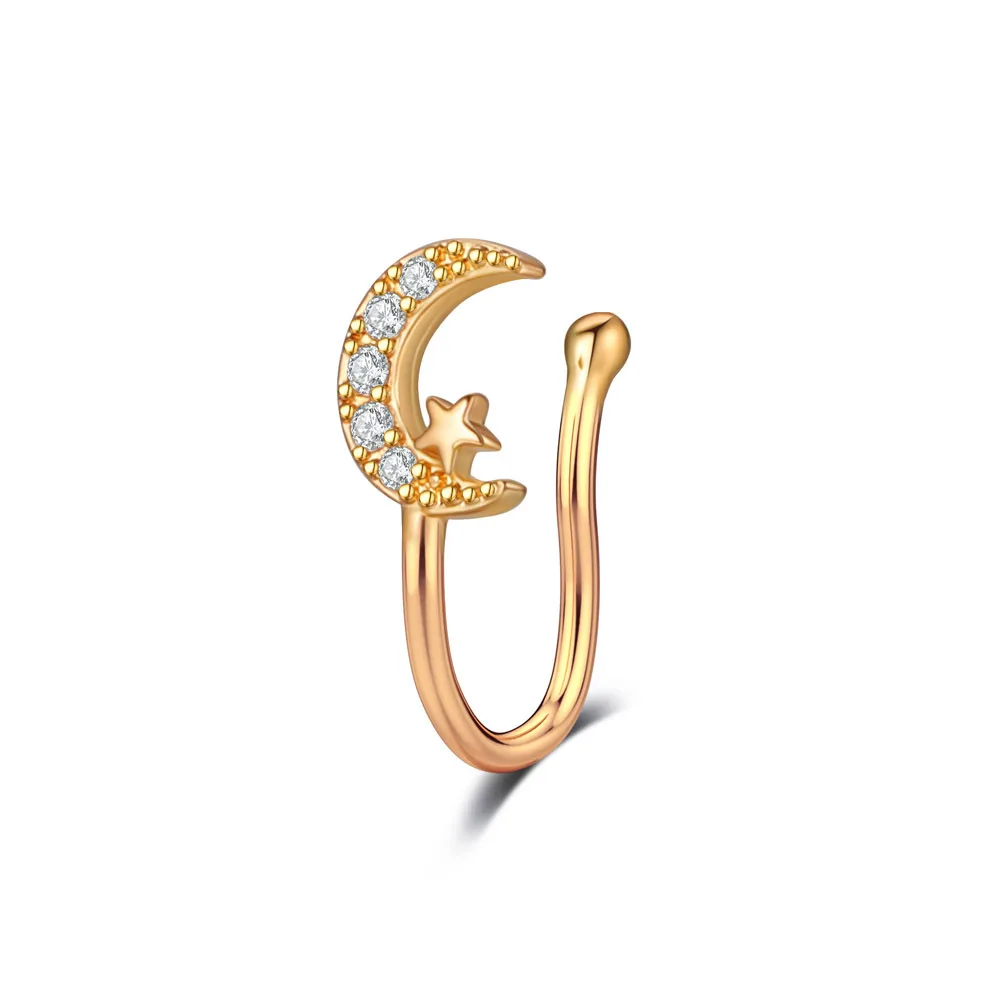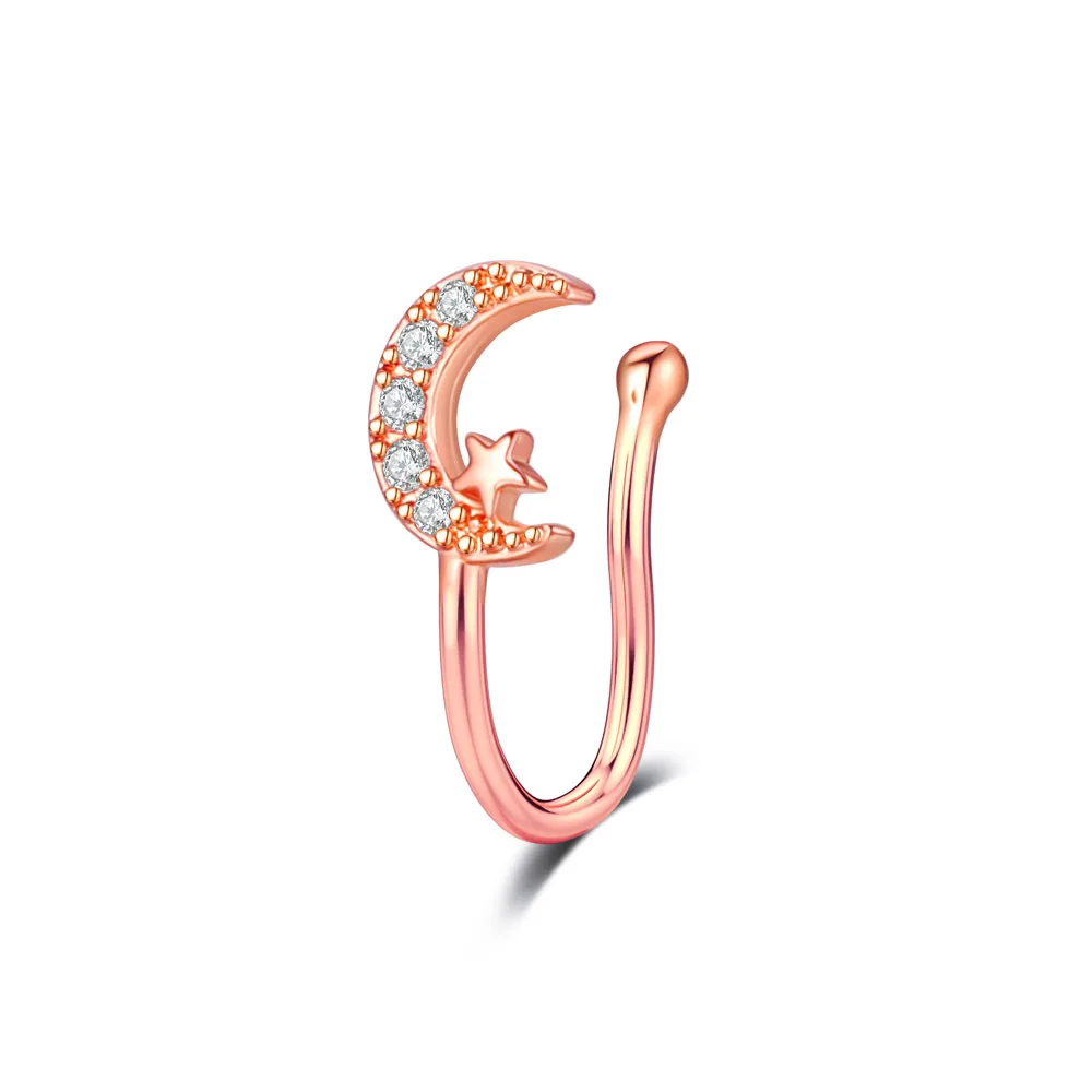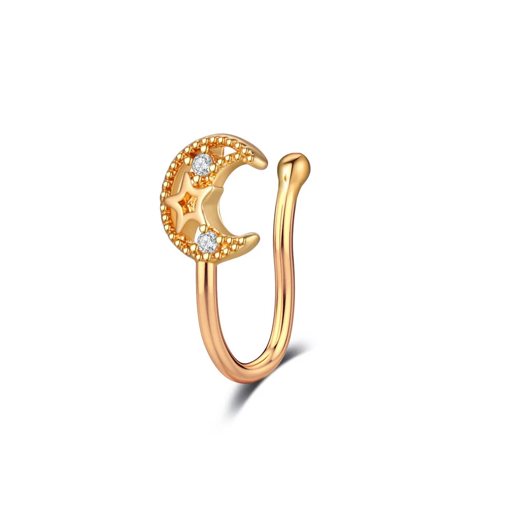Симпатичное кольцо в нос с Луной, клипса в носу, цветок из нержавею...