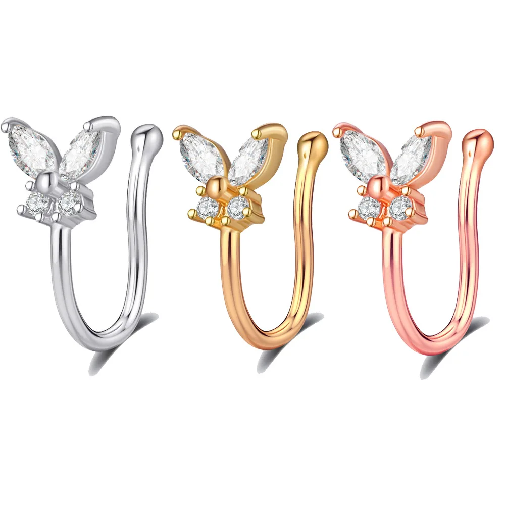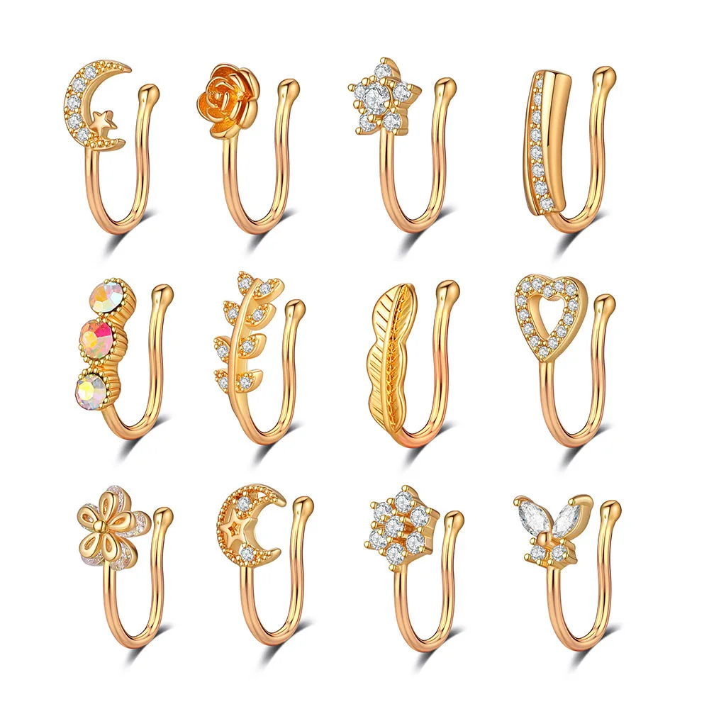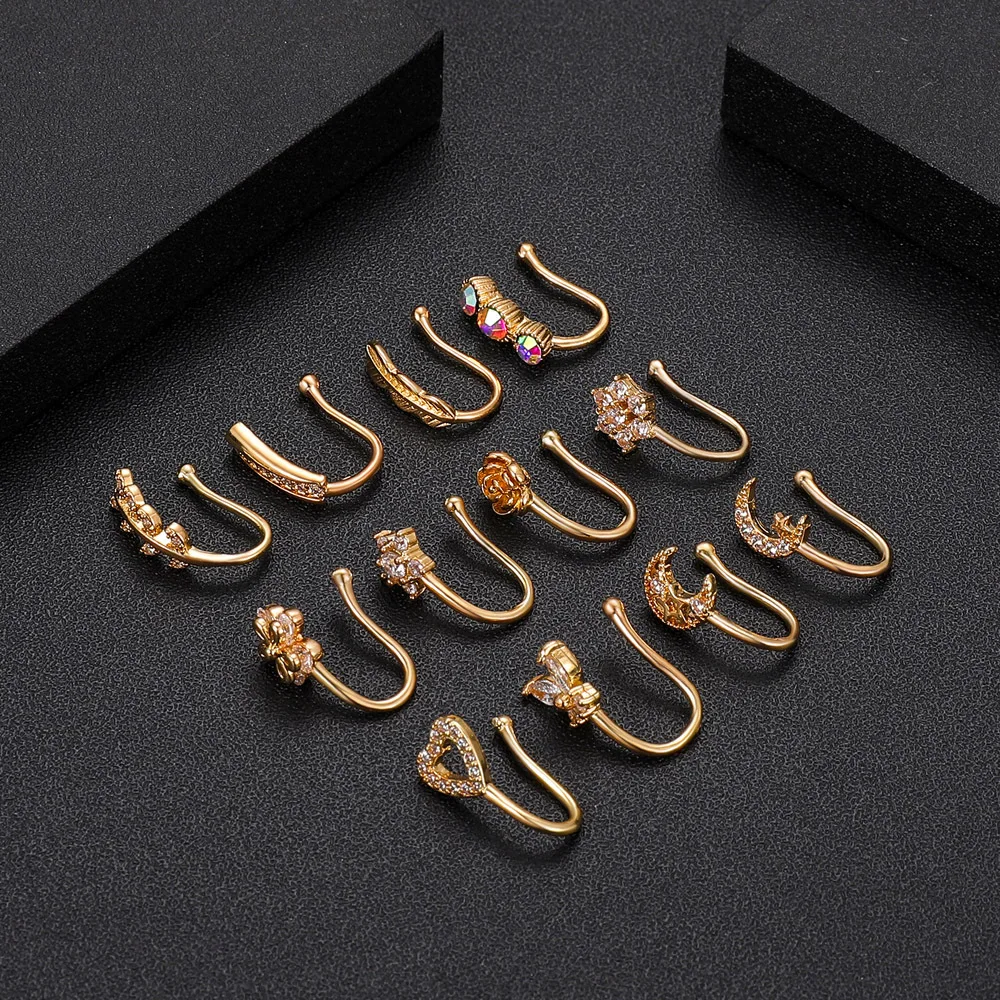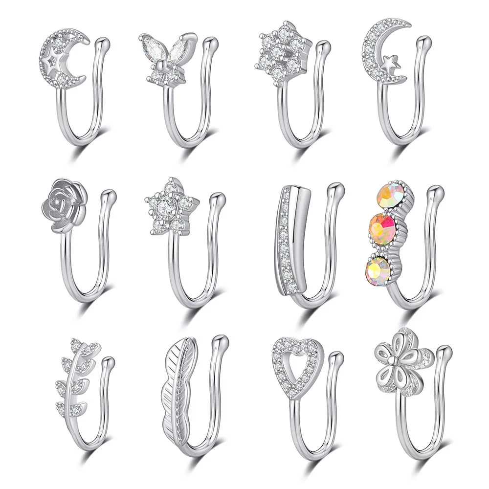 36 шт. Новый Кристалл CZ Циркон фальшивая клипса для носа кольцо для пирсинга носа ювелирные изделия медная клипса на Сердце Звезда цветок оптовая продажа шпильки для тела