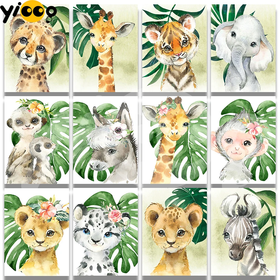 Алмазная вышивка Стразы с квадратными стразами, 5D Вышивка крестиком, мозаика с изображением животных в листьях, домашний декор, подарок TB12