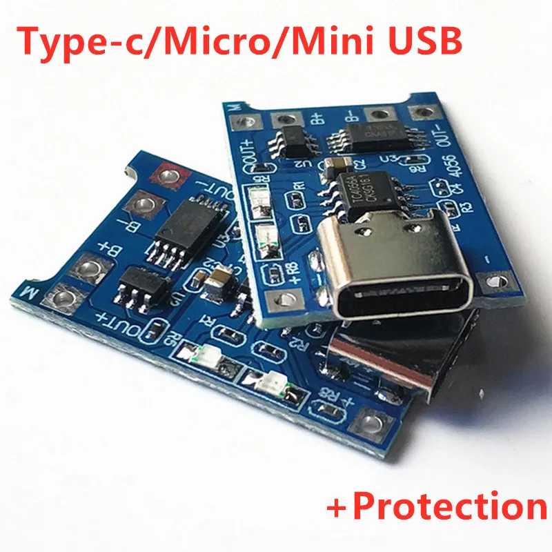 Литиевая батарея TP4056 18650 1 шт. Great IT 5 в 1 а Micro USB 3. 0 Type-c, зарядная плата, модуль зарядного устройства + Двойная функция защиты TP4056 18650