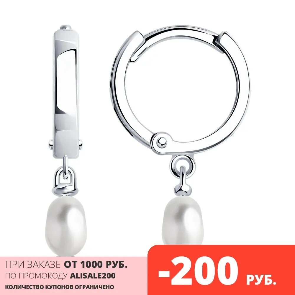 Серьги SOKOLOV из серебра с жемчугом, Серебро, 925, Женские, Серьги 2022 тренд, Оригинальная продукция