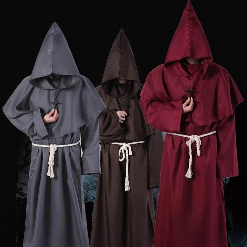 Плащ с капюшоном унисекс Wizard халат для Хэллоуина, костюм монаха для косплея, одежда для ролевых игр