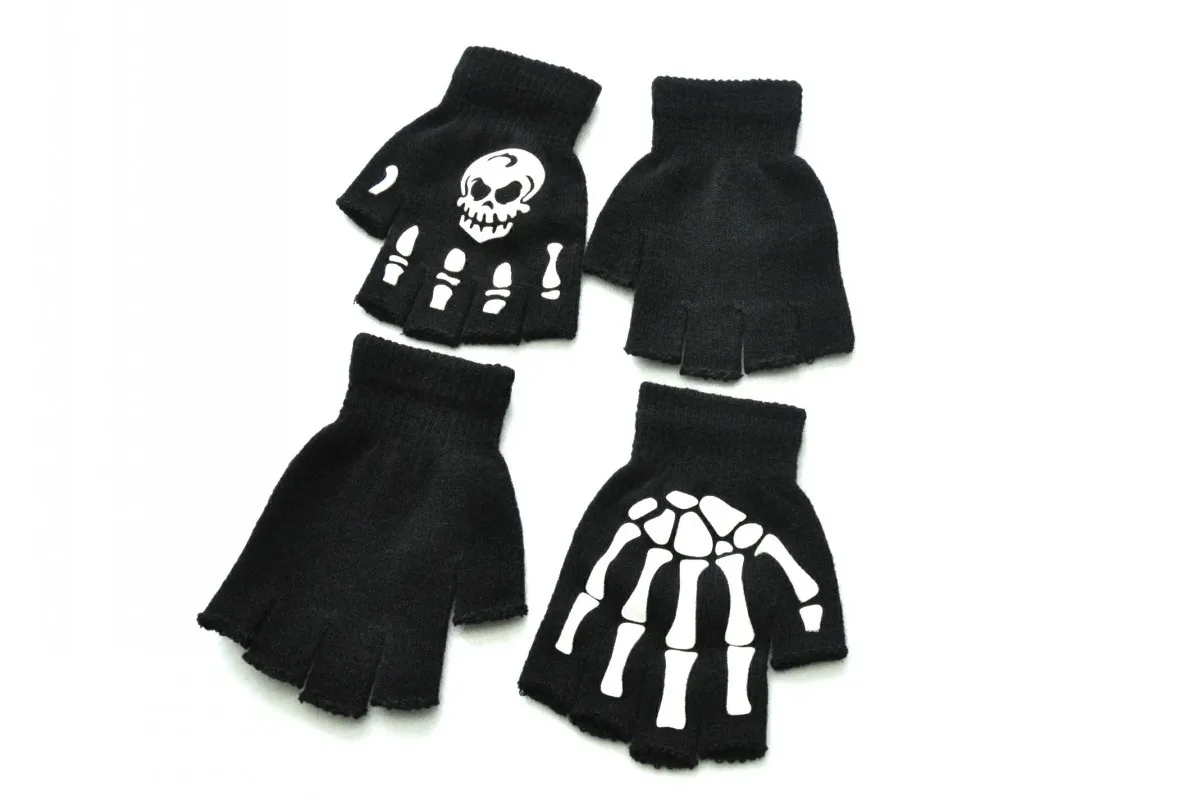 Светящиеся перчатки с принтом черепа, вязаные теплые полупальцевые ...