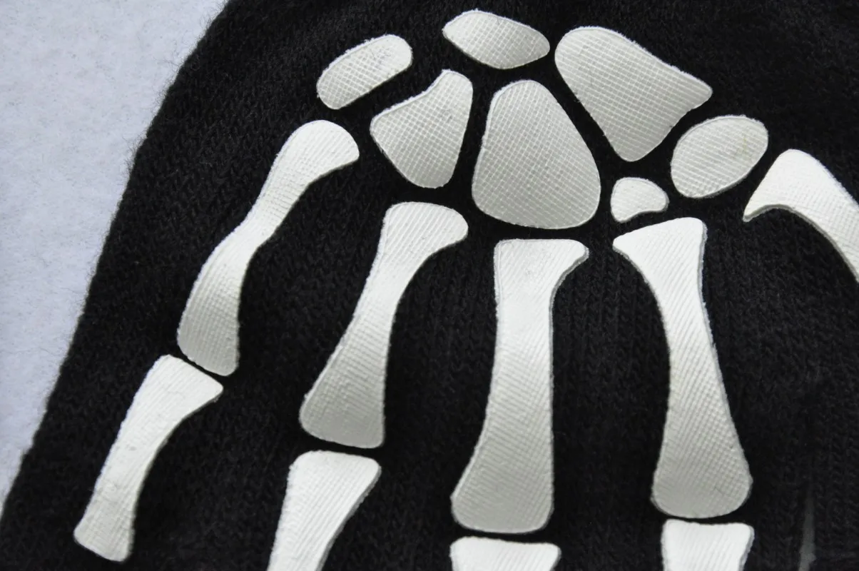 Флуоресцентные вязаные перчатки с принтом скелета черепа, крутые ос...