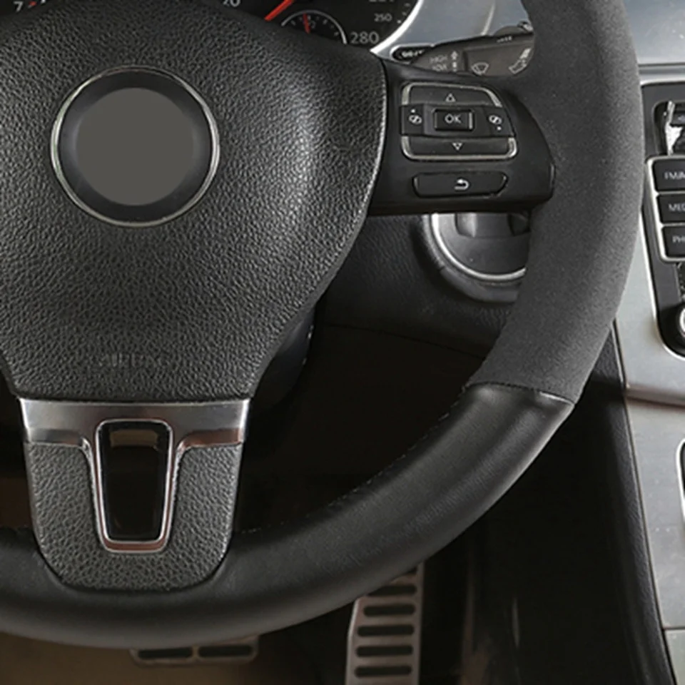 Чехол рулевого колеса автомобиля DIY черная замша для Volkswagen VW...