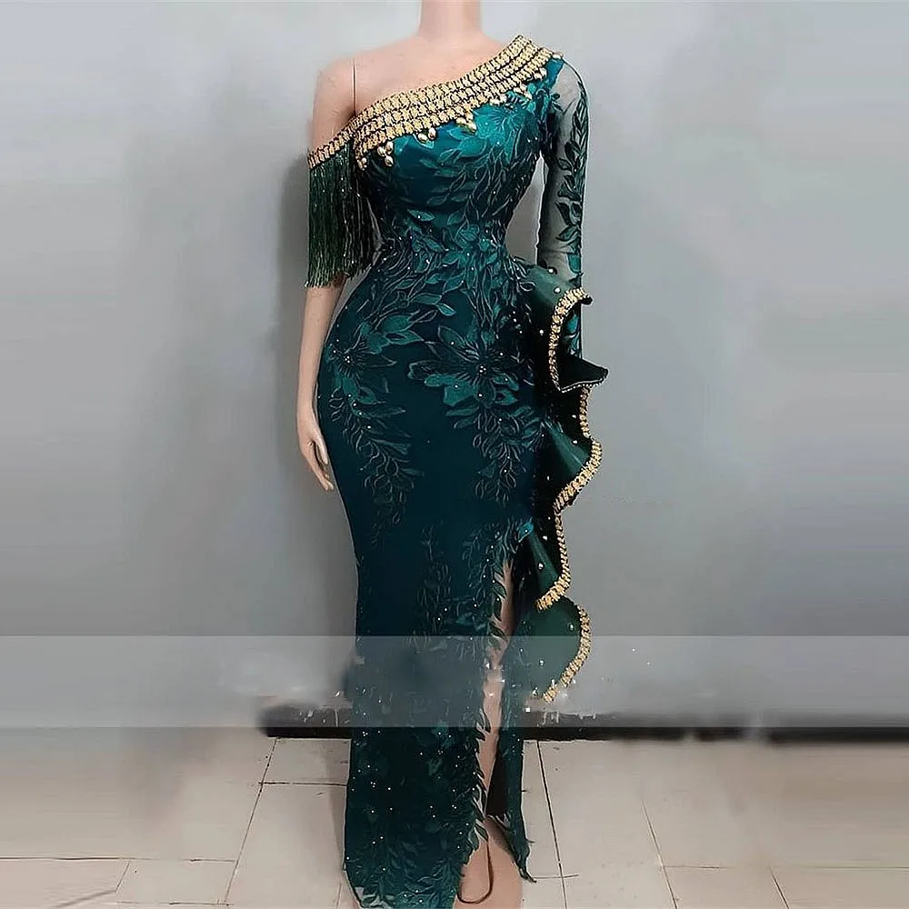 Вечернее платье-Русалка с разрезом по бокам, на одно плечо