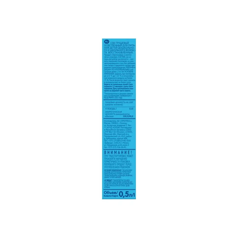 Сок ФрутоНяня груша, осветленный с 3-х лет, 0,5л