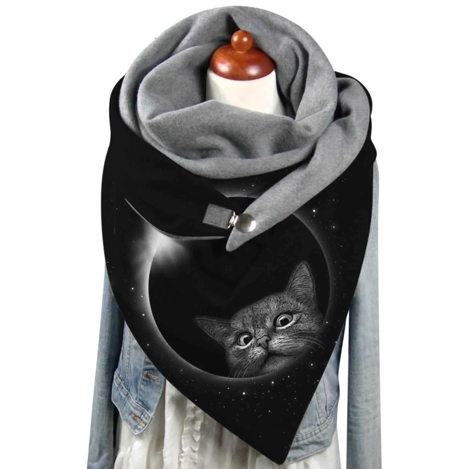 Женский зимний мягкий Шарф на пуговицах с кошачьим принтом, повседневные теплые шарфы, шали для отдыха, Удобный Шарф-тюрбан на пуговицах, хиджаб