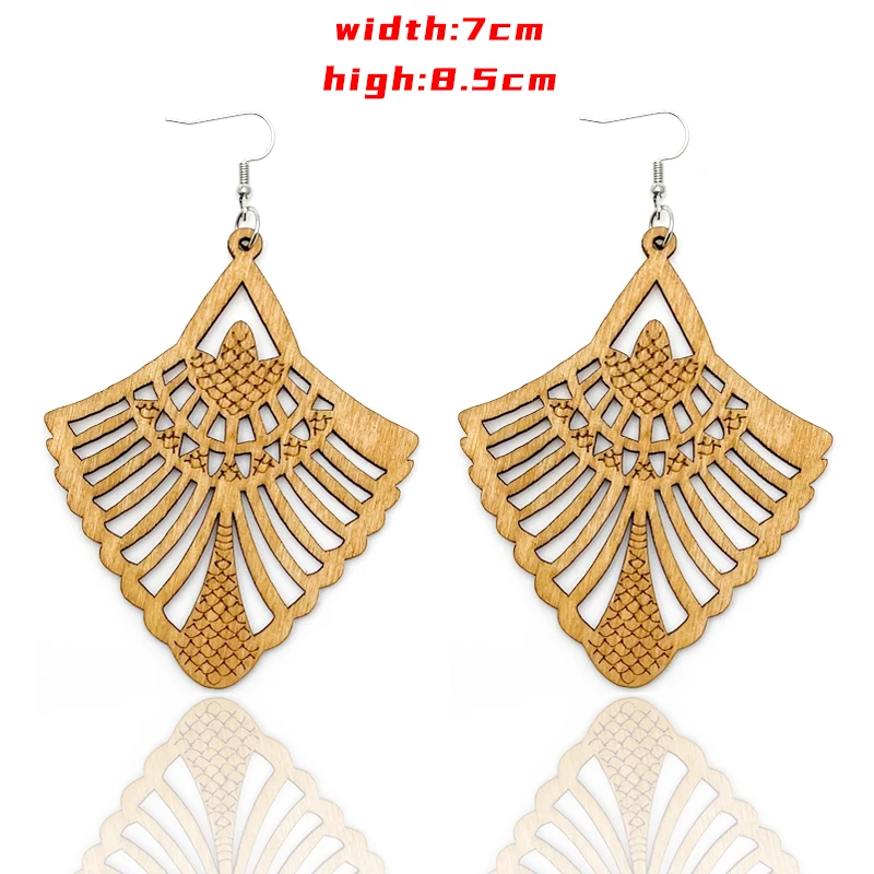 Винтажные серьги-подвески SOMESOOR из натурального дерева с лазерной гравировкой светло-коричневого цвета, Африканские Этнические подвесные украшения для женщин, подарки