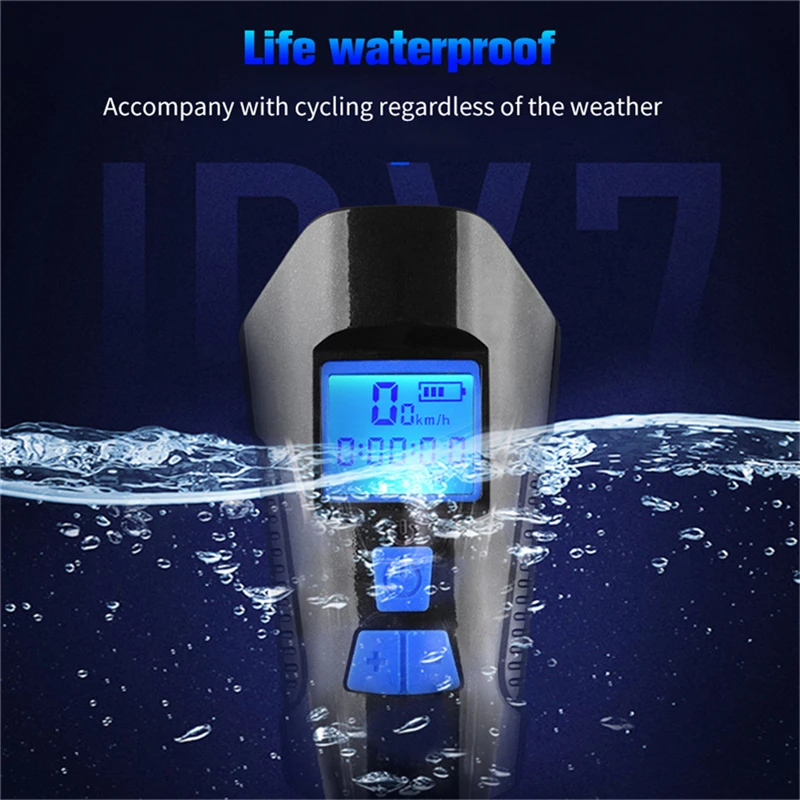 【Велосипедный компьютер и Horn】-этот велосипедный компьютер хорошо работает для измерения и записи скорости, расстояния и времени езды, которые должны знать любой серьезная велосипедист или Фанатик фитнеса. Велосипедный передний светильник и Рог 2 в 1. Велосипедный рог может издавать предупреждающий звук до 120 дБ и есть 6 звуков для изменения