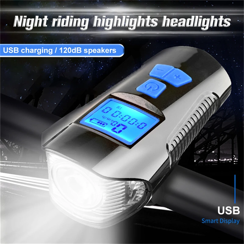 Велосипедсветильник, водонепроницаемый, с зарядкой по USB, с ЖК-дис...