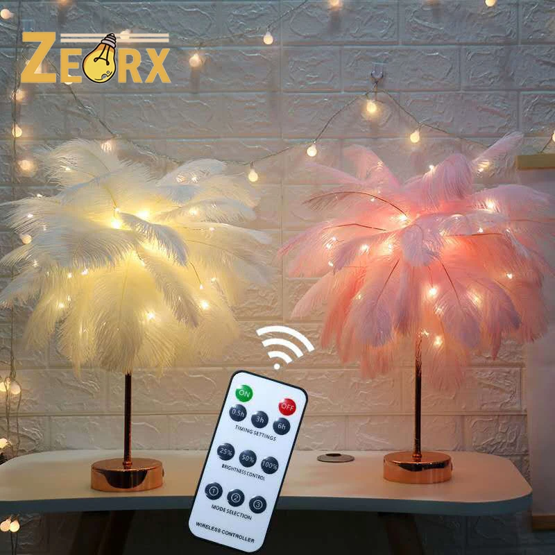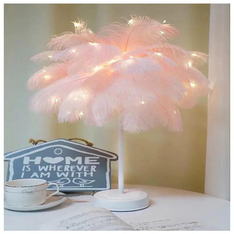 Декоративная настольная лампа с перьями, на батарейках, романтический светильник для спальни, детской комнаты, дня рождения, стола, украшение для стола